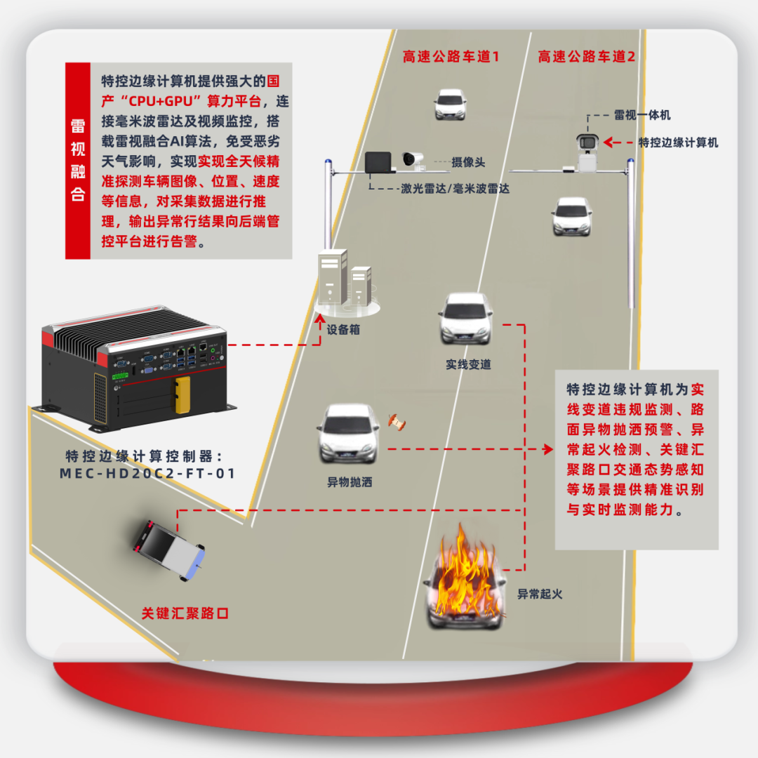 通過(guò)集成特控工控機(jī)、服務(wù)器等尖端硬件的新型智慧高速解決方案,我們不僅實(shí)現(xiàn)了收費(fèi)場(chǎng)景的極致協(xié)同,更將事故預(yù)警與快速處置能力推向了新的高度,為高速公路裝上了“智慧之眼”,實(shí)現(xiàn)實(shí)時(shí)監(jiān)測(cè)與精準(zhǔn)智能分析,極大地提升了高速公路的智能化、高效化與綠色化水平,為現(xiàn)代綜合交通運(yùn)輸體系的構(gòu)建提供了堅(jiān)實(shí)的支撐。
